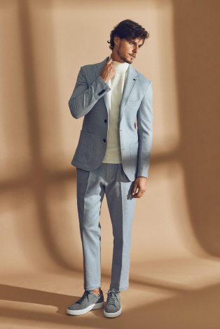 一般的なウールスーツと遜色ない出立ちですが、袖を通して驚くのは抜群の動きやすさです。理由は、自由自在に伸縮するストレッチ生地。あらゆる動きに対してしっかり寄り添うため、ストレスを感じさせません。しかも、吸湿性や透湿性も高く、暖房の効いた屋内にいても常に快適でいられます。