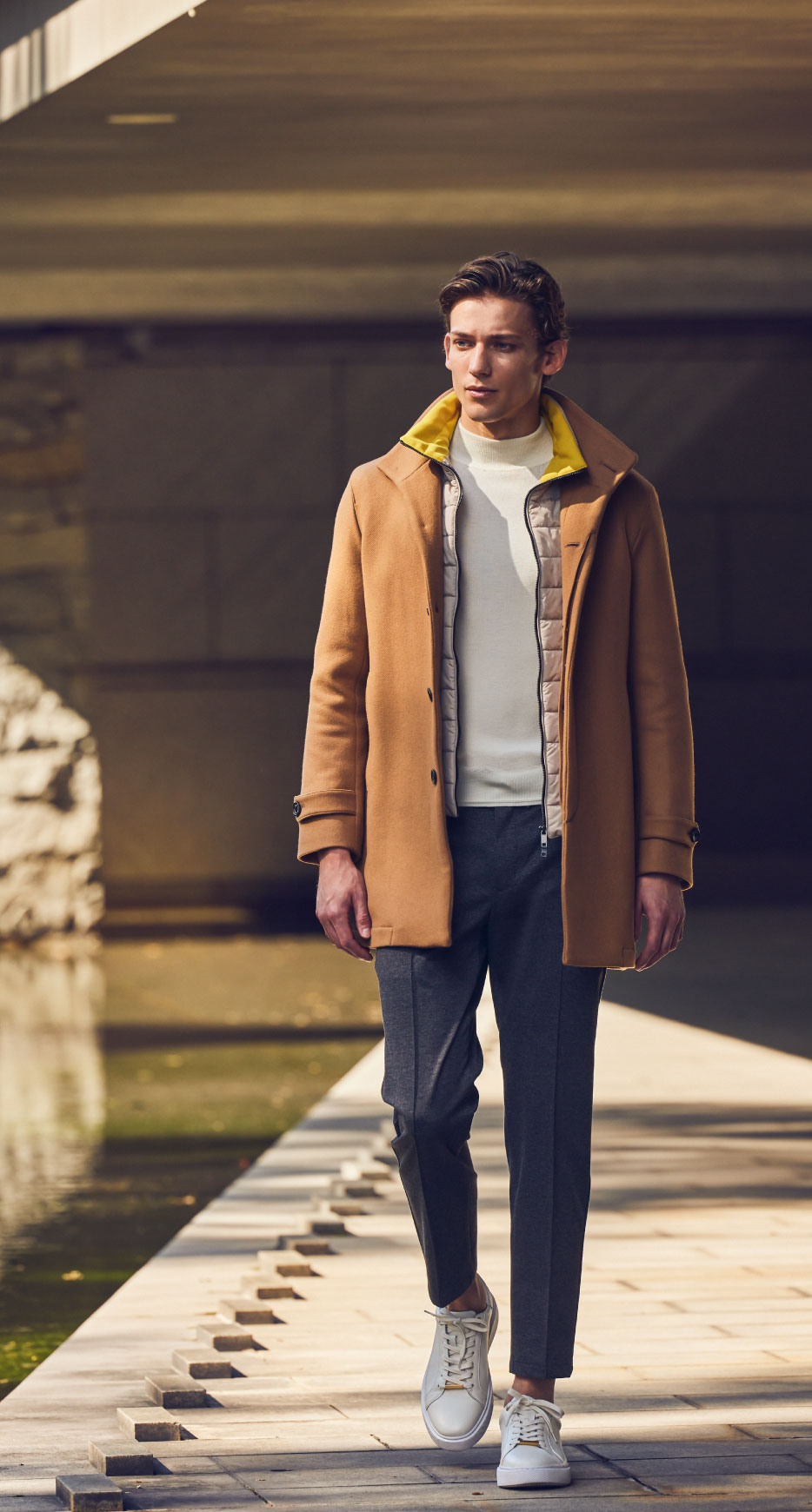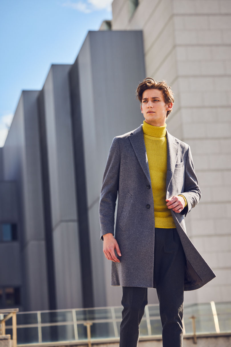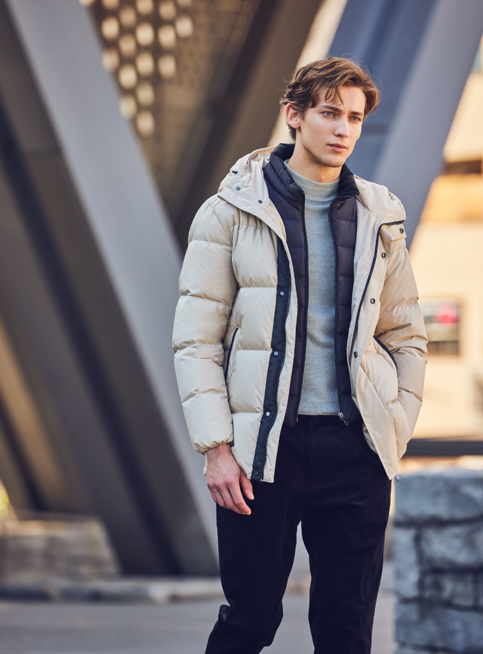 冬ともなれば防寒対策は必須。そこで、ダウンや中綿入りのアイテムに頼もしさを感じますが、ネガティブポイントを上げるとしたらラフさやアウトドア感。ただ、イタリアの実力派生地メーカーのポテンシャルを存分に感じさせるコート一着でその不安材料は一掃できます。ひとたび合わせれば機能中綿をいれたナイロンレイヤードカラーがいい抜け感に。カラー衿の茶目っ気も存分に活かされるでしょう。スラックスを選ぶことでシックさはさらに上乗せされ、ほっこりするコーデュロイ生地のホワイトボトムスによりクリーンさと親近感のある着こなしが可能になります。