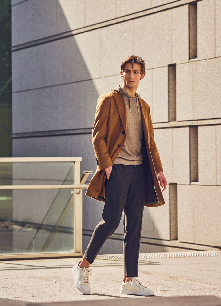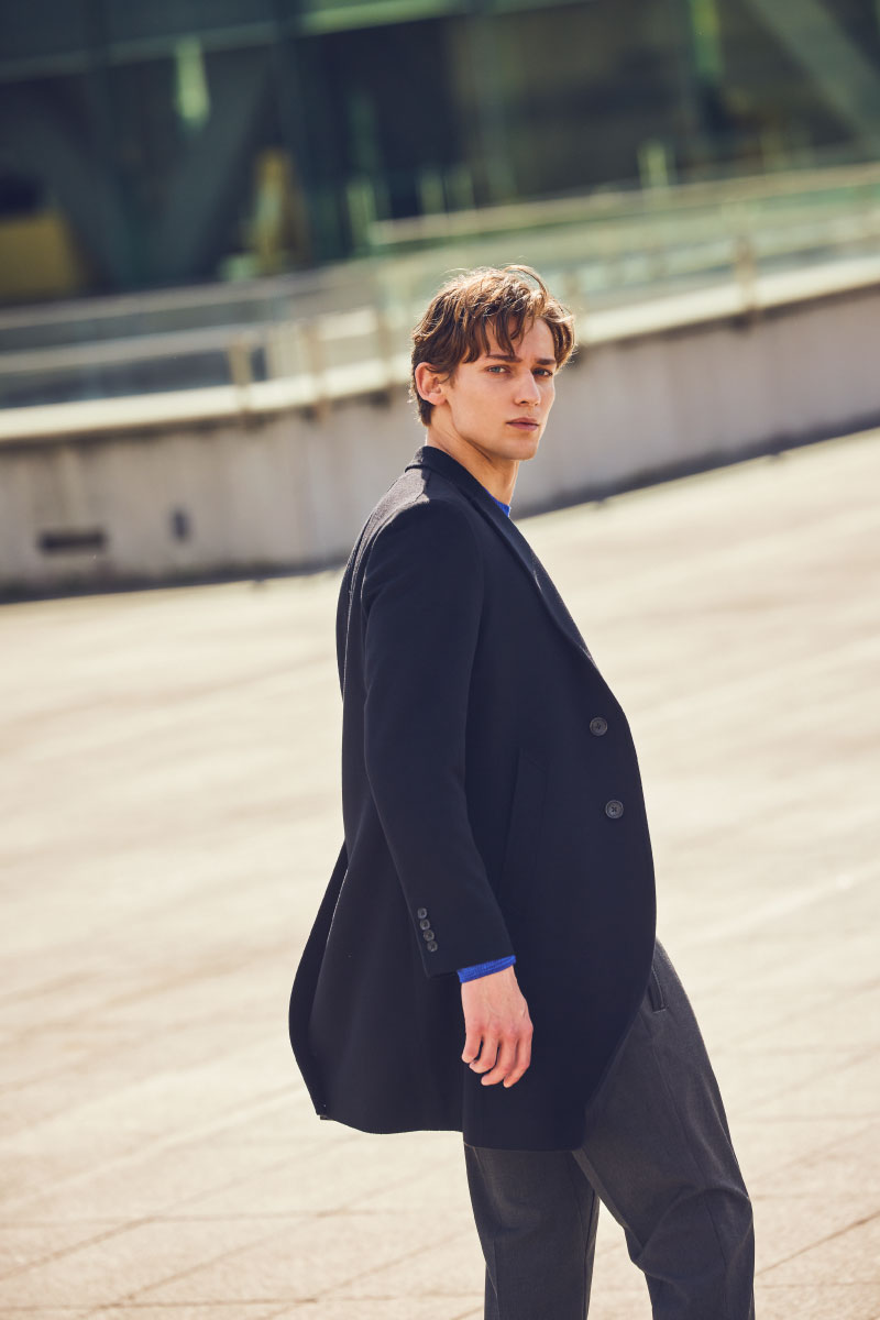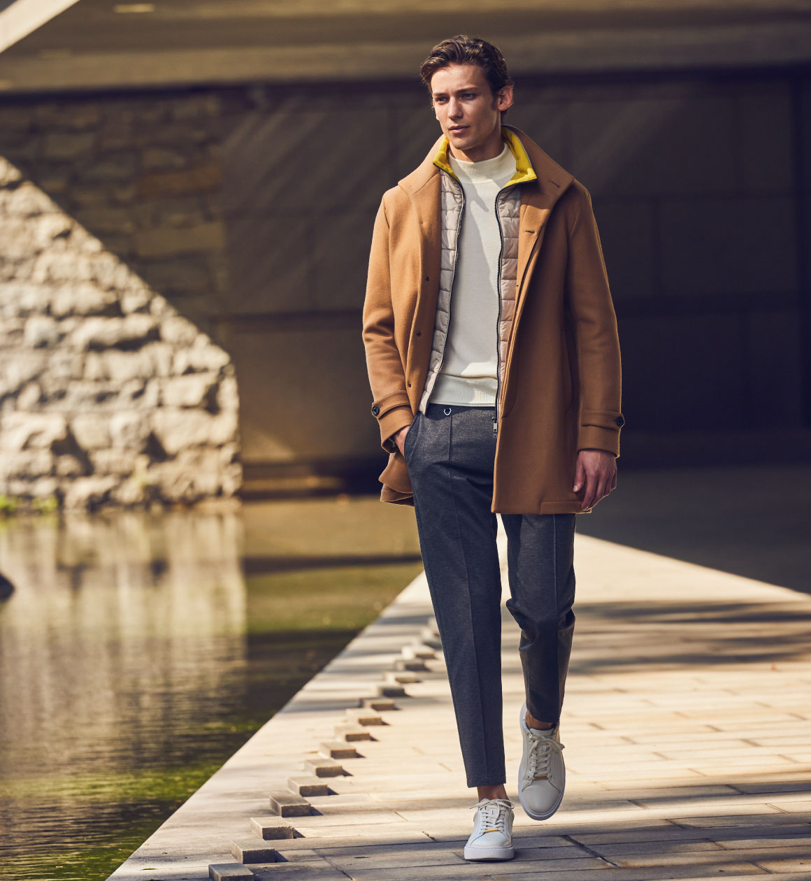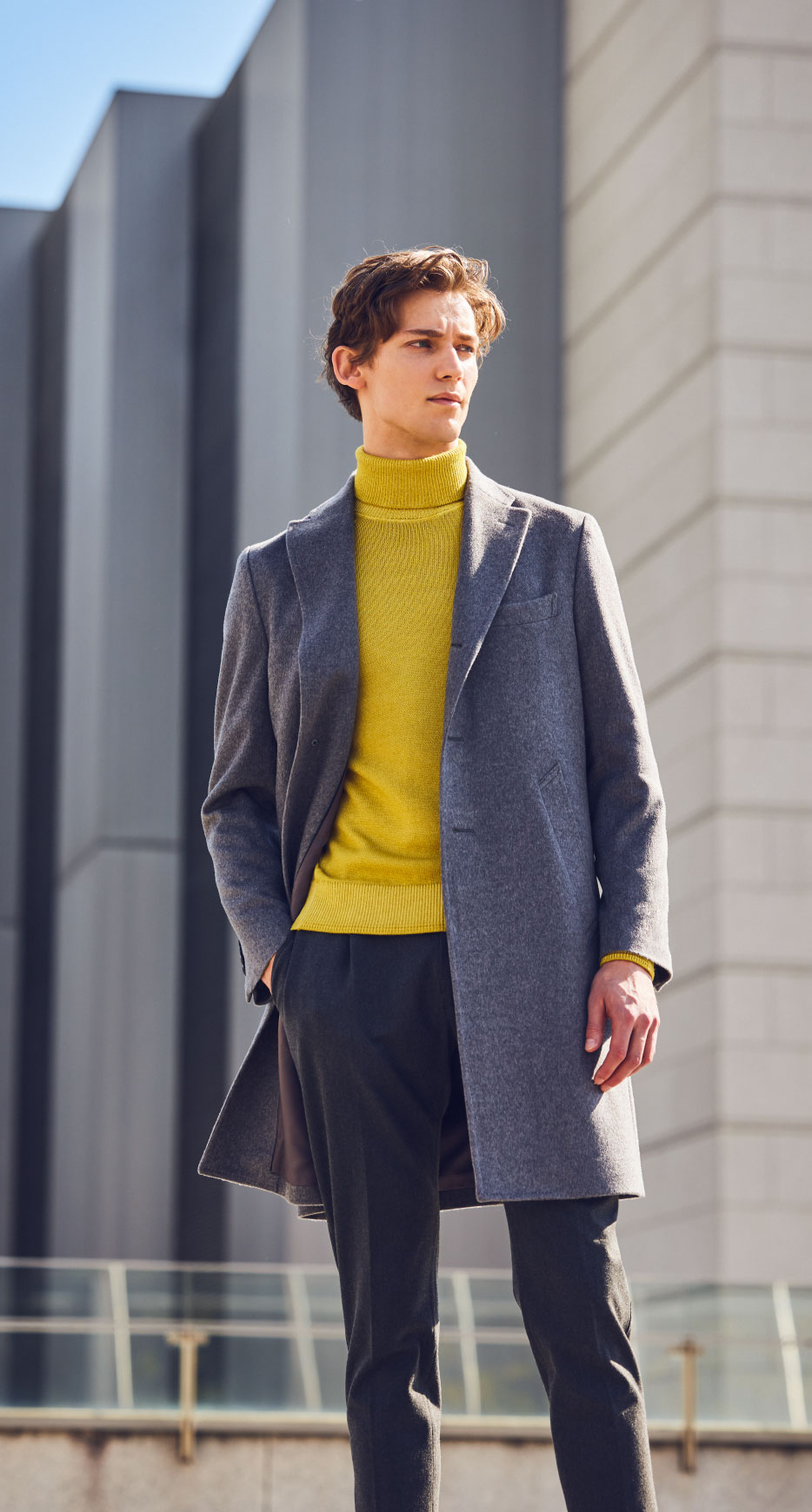 冬ともなれば防寒対策は必須。そこで、ダウンや中綿入りのアイテムに頼もしさを感じますが、ネガティブポイントを上げるとしたらラフさやアウトドア感。ただ、イタリアの実力派生地メーカーのポテンシャルを存分に感じさせるコート一着でその不安材料は一掃できます。ひとたび合わせれば機能中綿をいれたナイロンレイヤードカラーがいい抜け感に。カラー衿の茶目っ気も存分に活かされるでしょう。スラックスを選ぶことでシックさはさらに上乗せされ、ほっこりするコーデュロイ生地のホワイトボトムスによりクリーンさと親近感のある着こなしが可能になります。