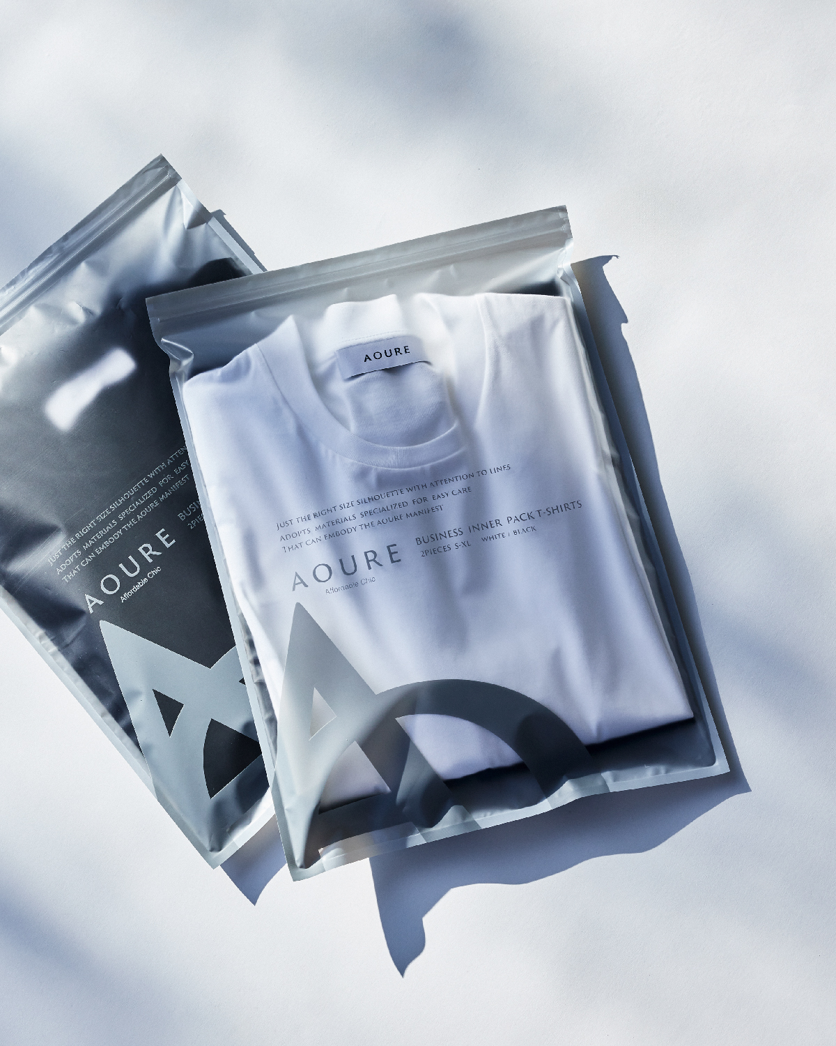 AOUREはこれまで、素材・デザインにおいてこれまでもこだわりを披露してきました。それは、着用したことのある方なら存分に感じて頂けているかと。その心意気はたとえパックTであろうと変わりません。ほんのり放たれる光沢は美しく、惚れ惚れするのが肌触り、アイテムに漂う上品な風情に誰もが驚かれるはずです。そしてジャケットが触れる首筋に寄り添うように設計されたデザイン。ビジネスの相棒となるジャケットの襟裏汚れを防ぎ、清潔感を保ち続けることが可能に。