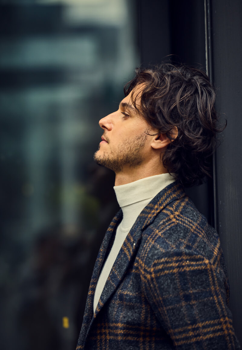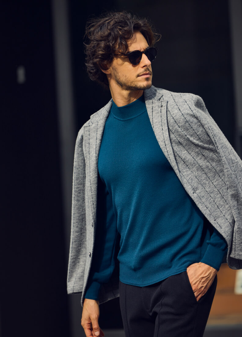 夏の暑さが尾を引いているかのように、昨今の秋冬は思いのほか温かく感じられます。そんな今だからこそジャケット以上コート未満の新たな感覚のアウターが必要かと。そこで新ラインのIL GIACCONE/イル ジャッコ―ネです。こちらは往時の威厳とトッポい風情が同居したクラシカルなダブルですが、二枚の布を一枚生地として縫い上げた、まさにアウター感覚で着られる一着。とはいえ、テーラード思想をベースに設計されているため趣は実にエレガントです。シルクやカシミアと同等の極細繊維で織り上げたメルトン生地に特殊加工を施しハリ感を加えているゆえ、シャツは無論、軽やかなニットを合わせても凛々しさは担保されます。