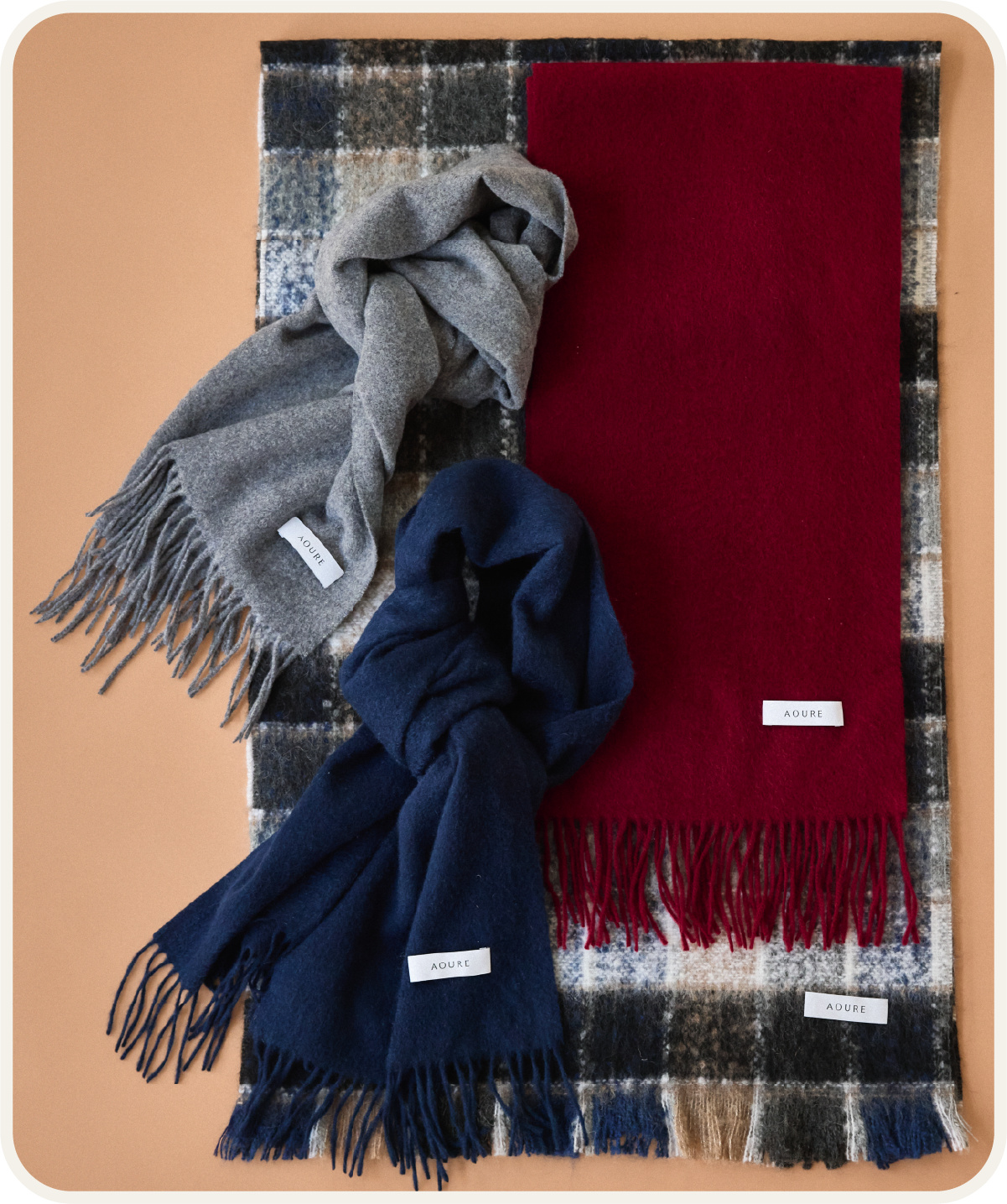 マンネリを脱し、いつもの装いに変化を添えるなら、 首元の小物は頼れる一手。 それが上質で心地よい素材のものなら日常を格上げしてくれる。