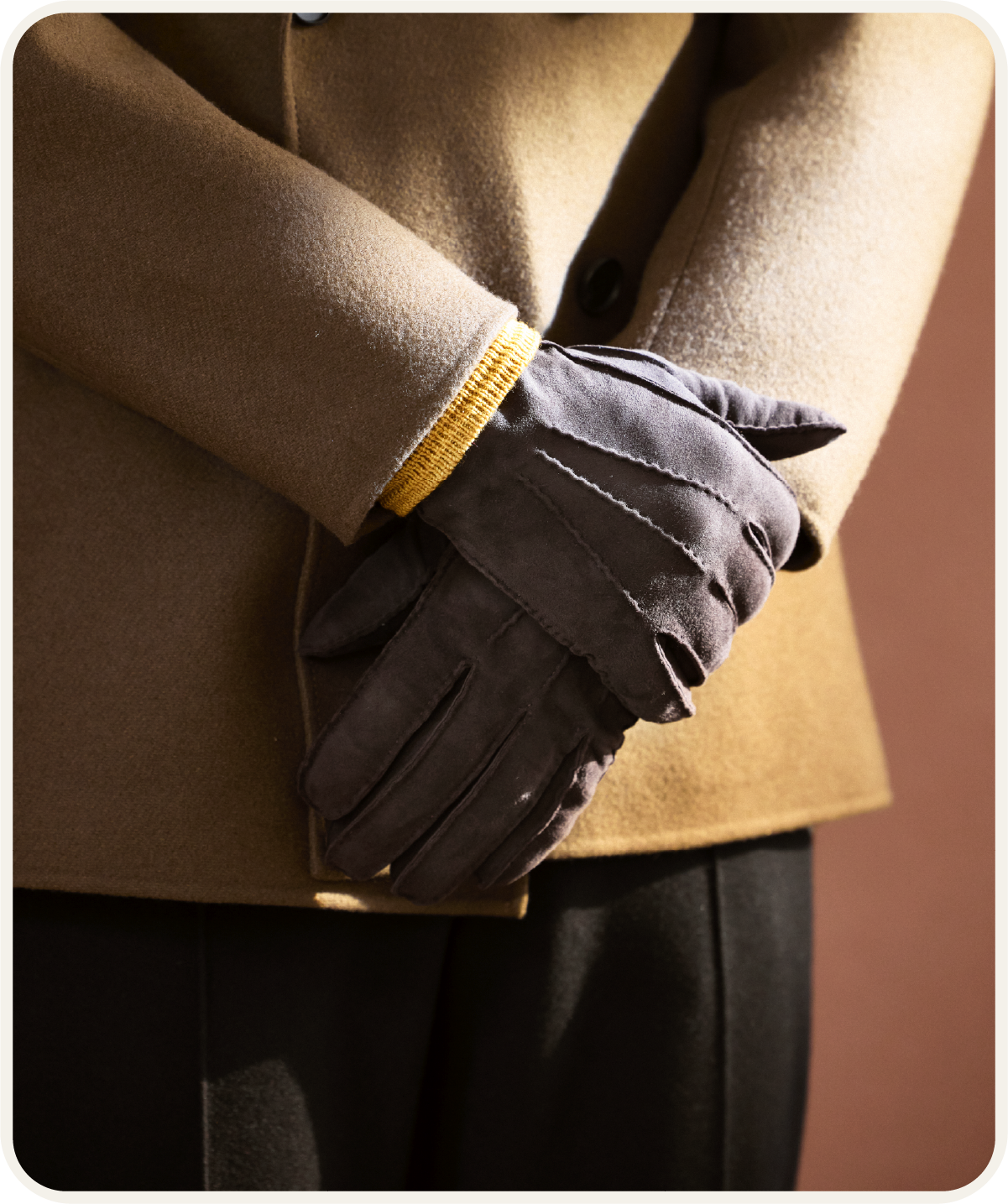 どんなアイテムも、魅力の源は細部に宿るもの。 温もりを感じるために大切なのも、実はそこにあります。 洗練されたグローブなら、装いに品を添えながら 手元にしっかりとした暖かさももたらしてくれます。