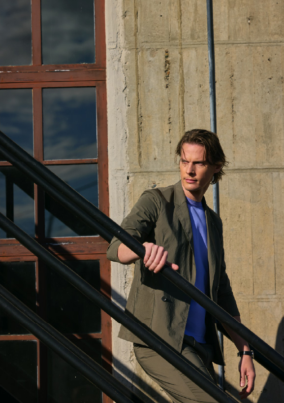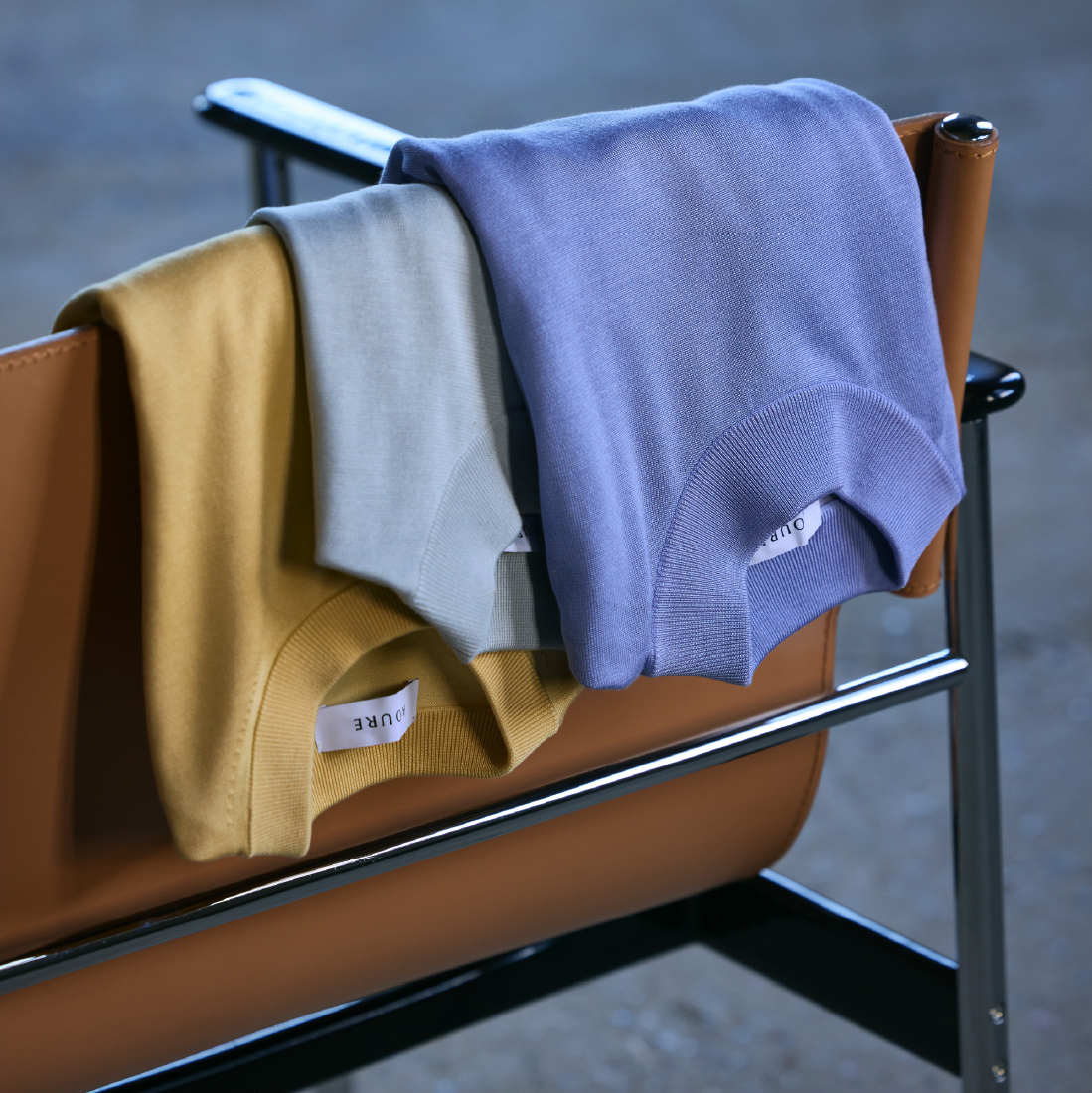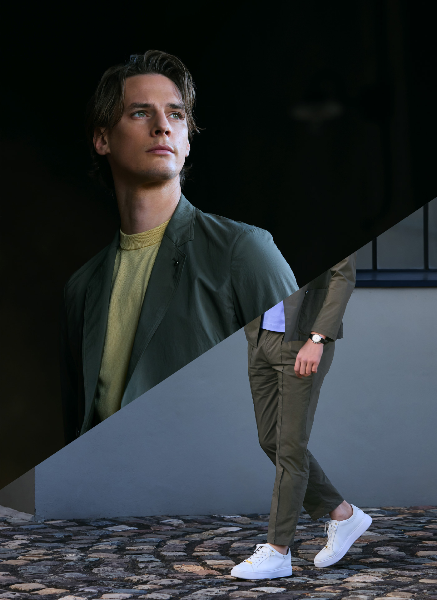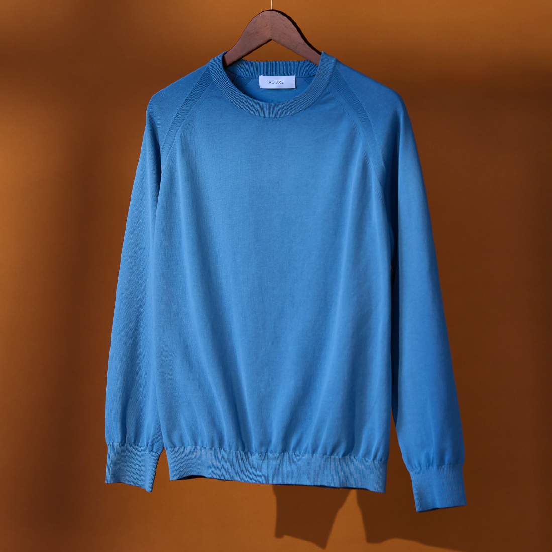 ダブルブレストジャケットに威厳が宿るのは、英国海軍のオフィサージャケットを起源に持つため。もともとは防寒着であり、ヨットクラブの制服としても着られてきた背景があります。品の良さと軽やかな着心地、伸縮性を備えた一着なら、コンフォートなパンツとも好相性。ラフさが気になる場合は、表にシルク、裏にコットンを用いたニットを合わせると、印象が整います。