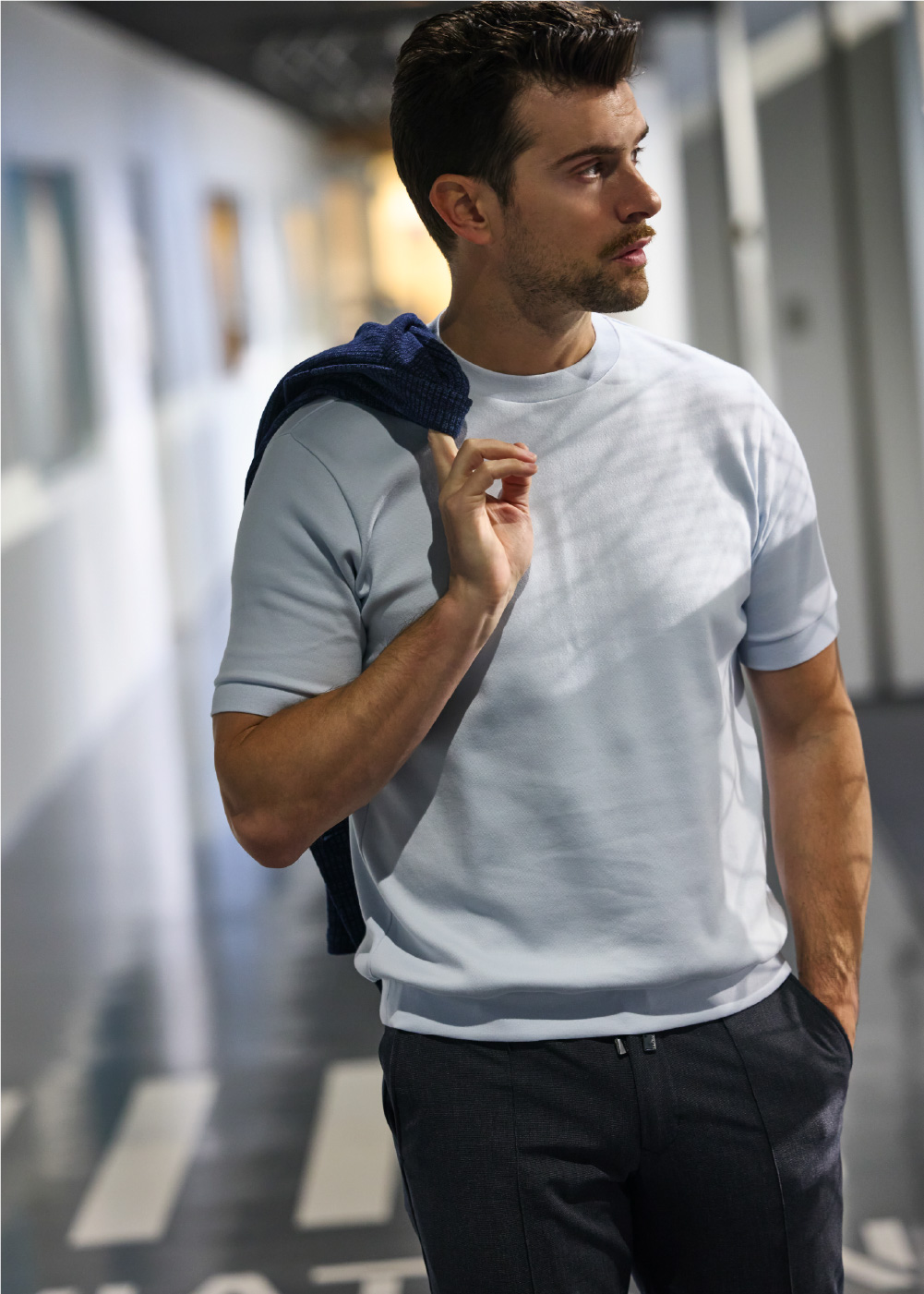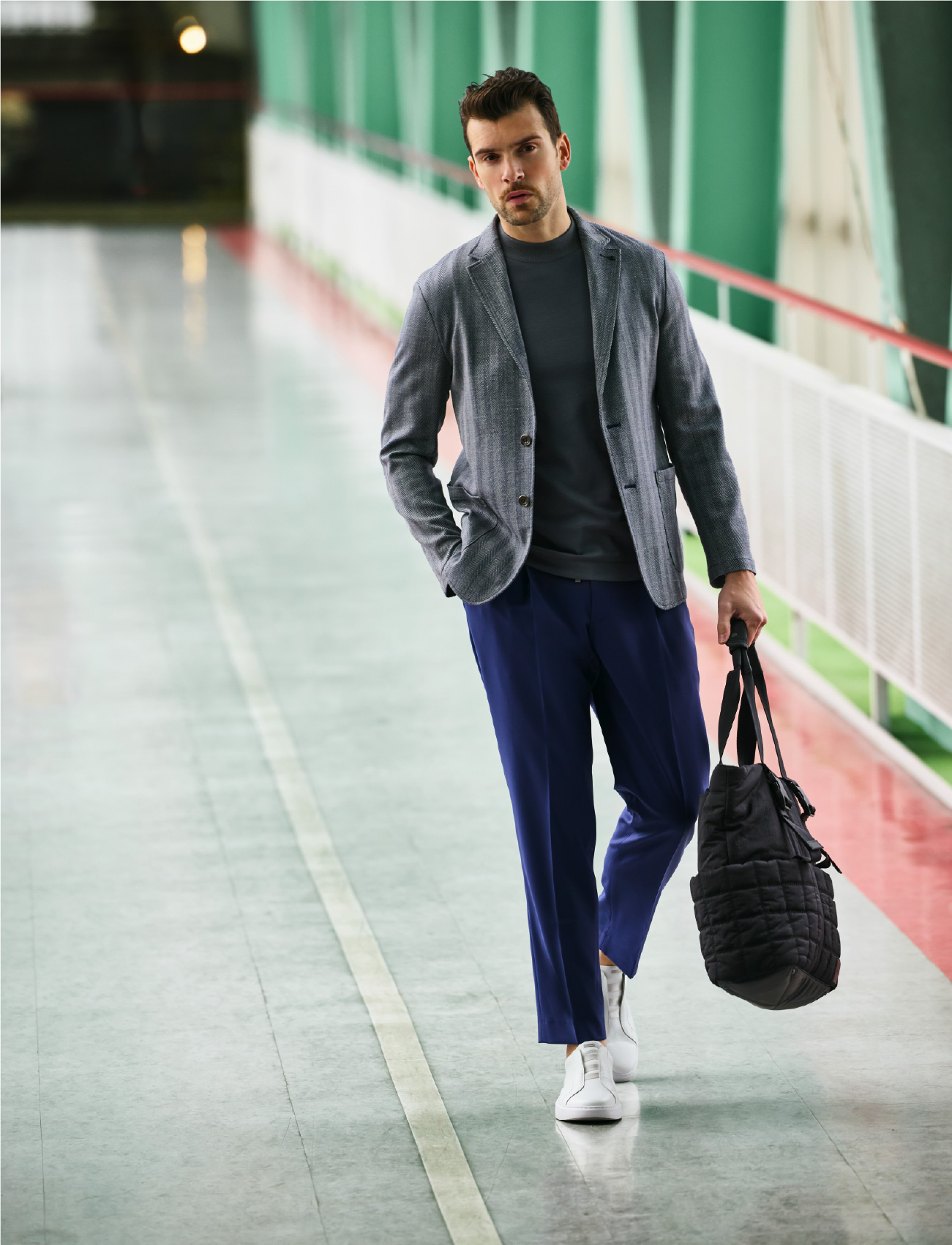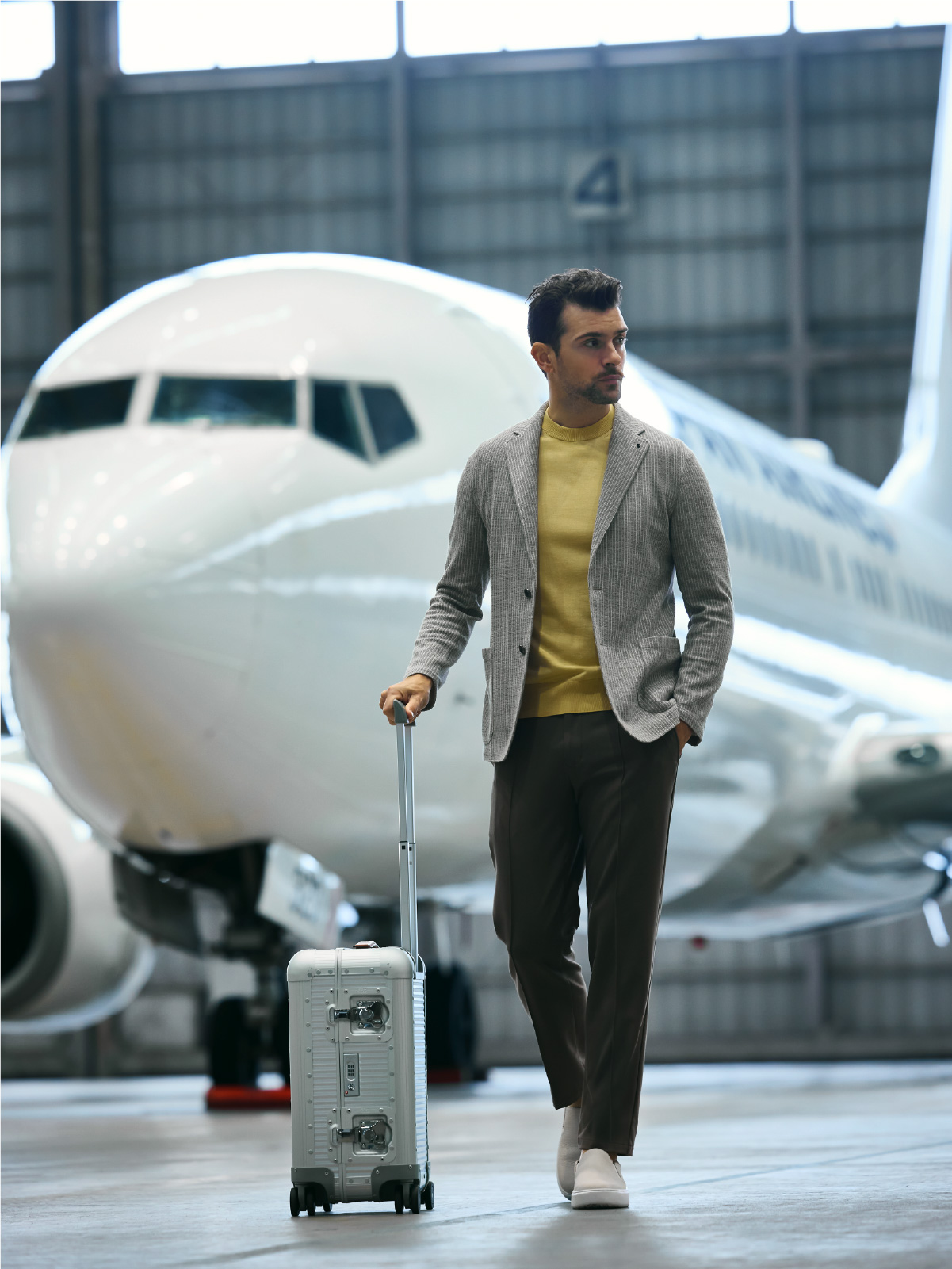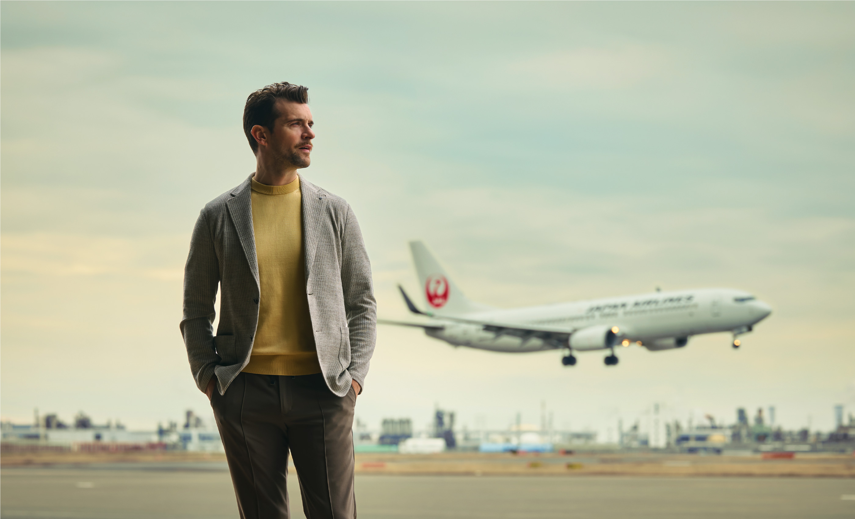 旅先への期待に胸を膨らませる大人たちを、 適と上質さを湛えたジャケット、 そして天然素材のカットソーが支えます。 だからこそ、 搭乗口へと向かう足取りはいつも軽快です。