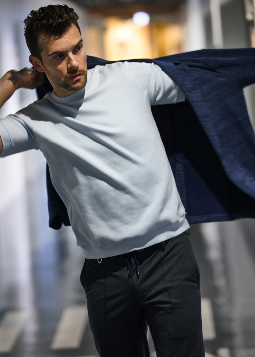 自由なマインドと、大人としての品格。 上質なジャケットと究極の着心地にこだわった ジャパンメイドのインナーが双方の共存を可能に。